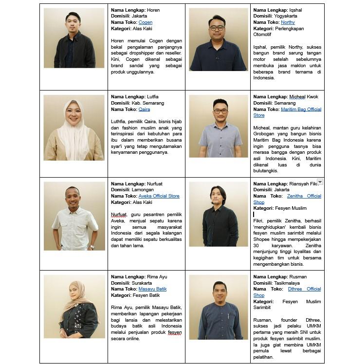 "UMKM merupakan pilar penting bagi perekonomian Indonesia, karenanya penting untuk terus memberikan dukungan bagi perkembangan mereka agar bisa naik kelas,” ujar Head of Corporate Affairs Shopee Indonesia, Satrya Pinandita.